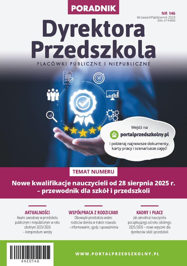 Wchodzimy w rok szkolny 2025/2026 z pakietem zmian, które bezpośrednio wpływają na decyzje kadrowe, organizacyjne i finansowe dyrektora. W tym Poradniku przekładamy przepisy na konkretne działania: wyjaśniamy nowy awans zawodowy, porządkujemy kwalifikacje obowiązujące od 28 sierpnia 2025 r. i pokazujemy, kogo można legalnie zatrudnić. Tłumaczymy zasady SIO i wag subwencji, omawiamy trudne sytuacje rodzinne, błędy uchwał rady pedagogicznej oraz bezpieczne przenoszenie i zatrudnianie nauczycieli. To gotowe procedury, wzory i praktyczne wskazówki, które pozwalają ograniczyć ryzyko i spokojnie rozpocząć nowy rok szkolny.