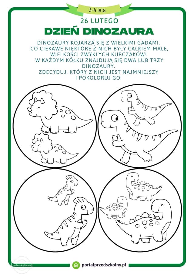 Karta pracy dla 3 i 4-latków na 26 lutego (Dzień Dinozaura)