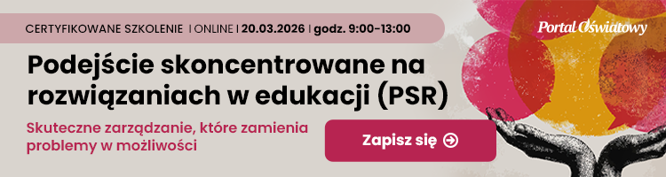Już 20 marca 2026 r. zapraszamy na praktyczne certyfikowane szkolenie: Podejście skoncentrowane na rozwiązaniach (PSR) w edukacji. Skuteczne zarządzanie, które zamienia problemy w możliwości dla dyrektorów placówek oświatowych.