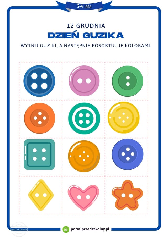 Karta pracy dla 3 i 4-latków na 12 grudnia (Dzień Guzika)