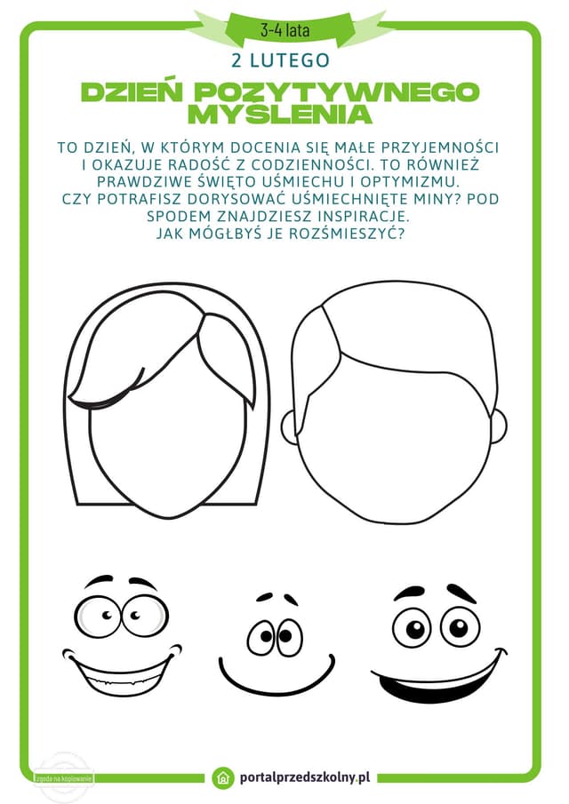 Karta pracy dla 3 i 4 latków na 2 lutego (Dzień Pozytywnego Myślenia)