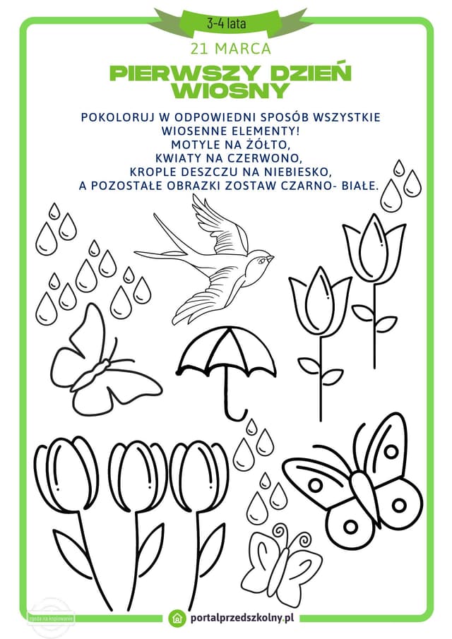 Karta pracy dla 3 i 4-latków na 21 marca (Pierwszy Dzień Wiosny)