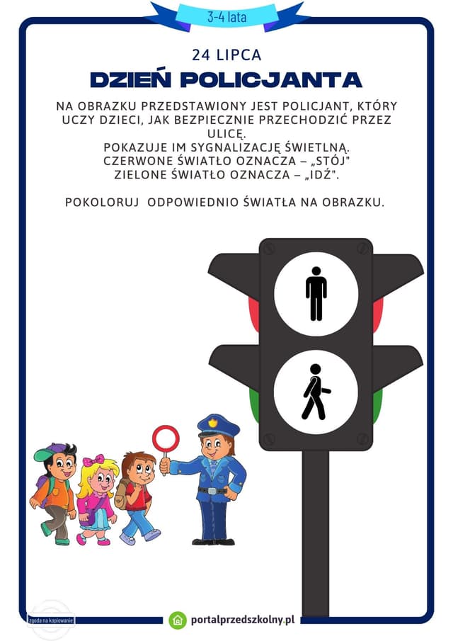 Karta pracy dla 3 i 4-latków na 24 lipca (Dzień Policjanta)
