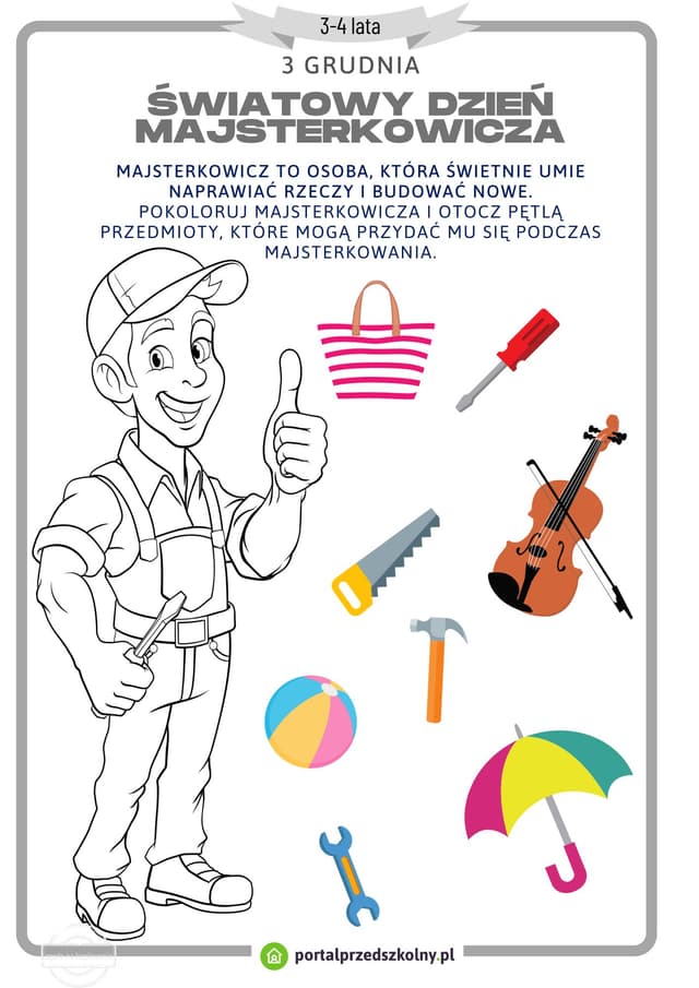 Karta pracy dla 3 i 4-latków na 3 grudnia (Światowy Dzień Majsterkowicza)