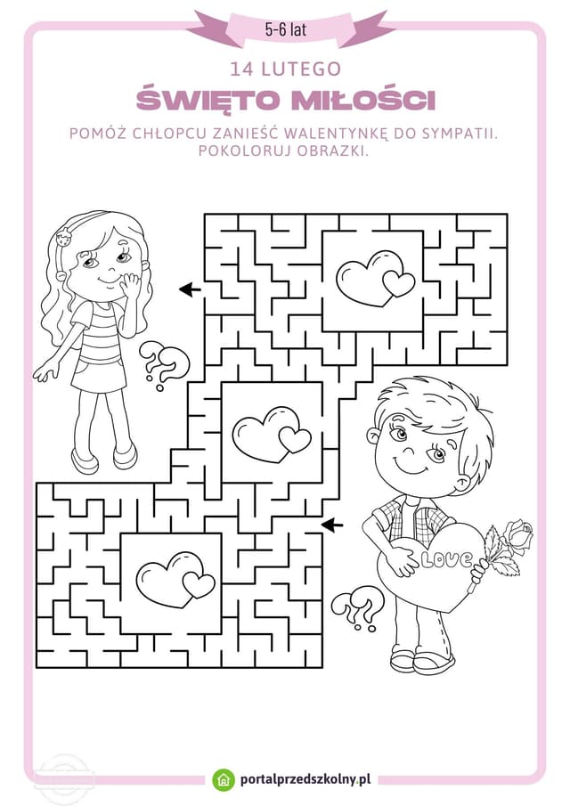 Karta pracy dla 5 i 6 latków na 14 lutego (Święto Miłości)