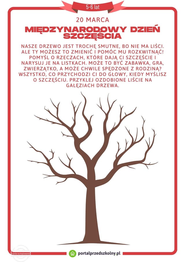 Karta pracy dla 5 i 6-latków na 20 marca (Międzynarodowy Dzień Szczęścia)