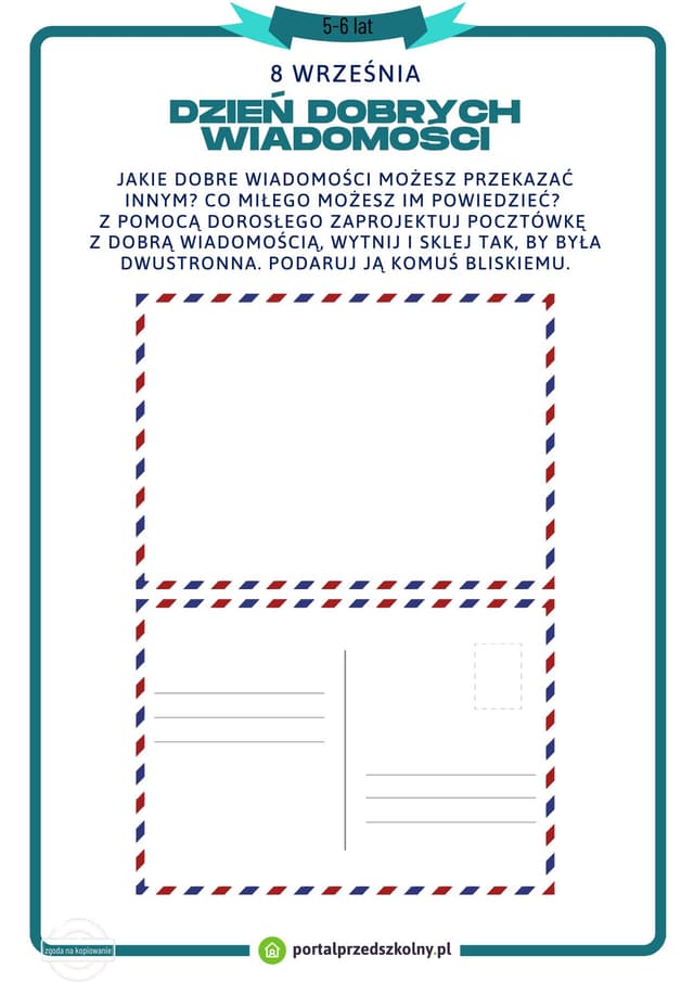 Karta pracy dla 5 i 6-latków na 8 września Dzień Dobrych Wiadomości