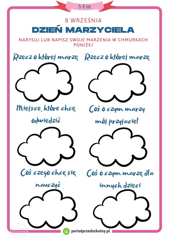 Karta pracy dla 5 i 6-latków na 8 września (Dzień Marzyciela)